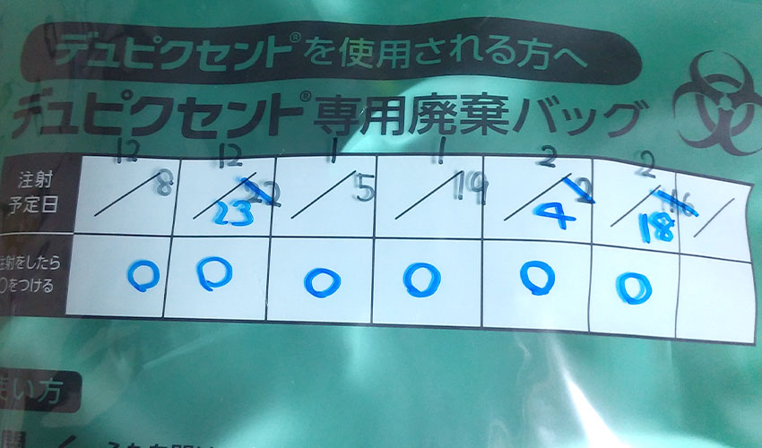 | 3 | 16日目 | 2020年4月14日 | ↑ | 処方日(6本) だいぶ楽に |