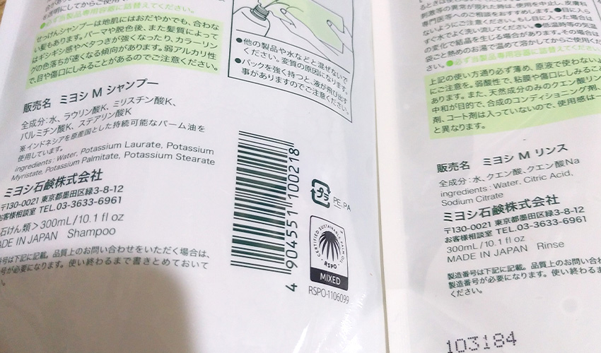 ミヨシのせっけんシャンプーとリンス