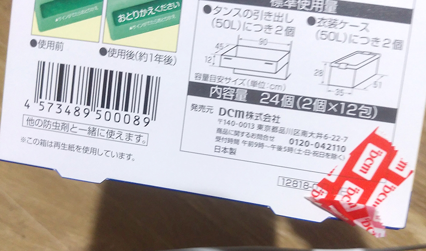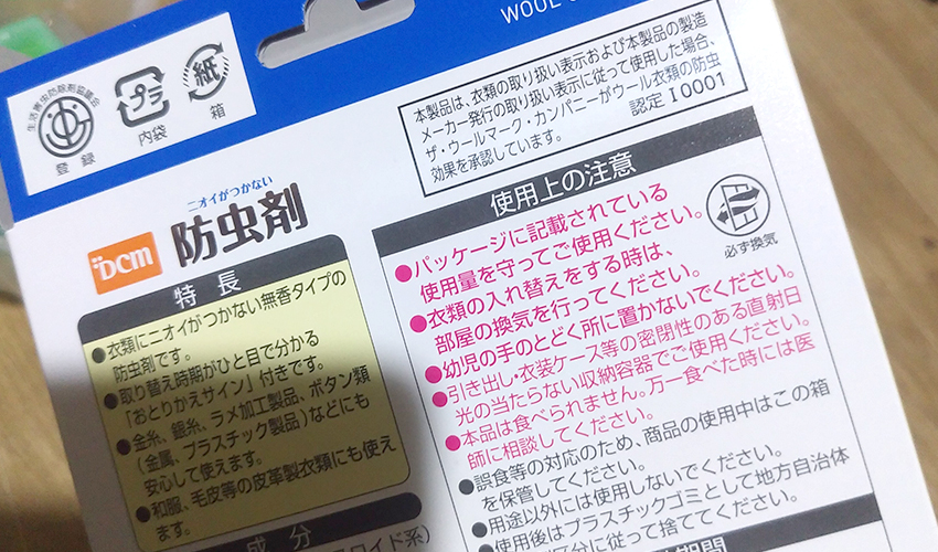 【レビュー】DCM ニオイがつかない防虫剤を使ってみた !使い方/口コミ/評価